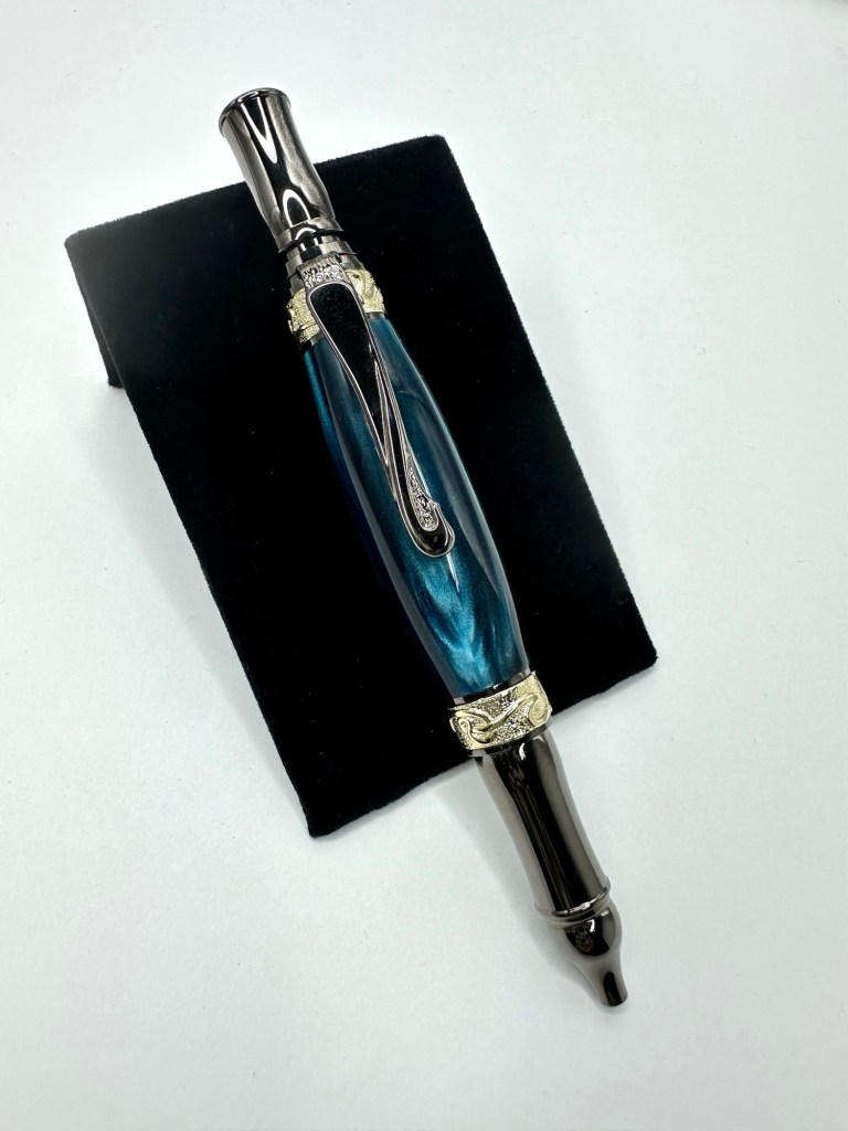 #22 Nouveau Pen in Shiny Blue Resin with a Gun Metal Finish