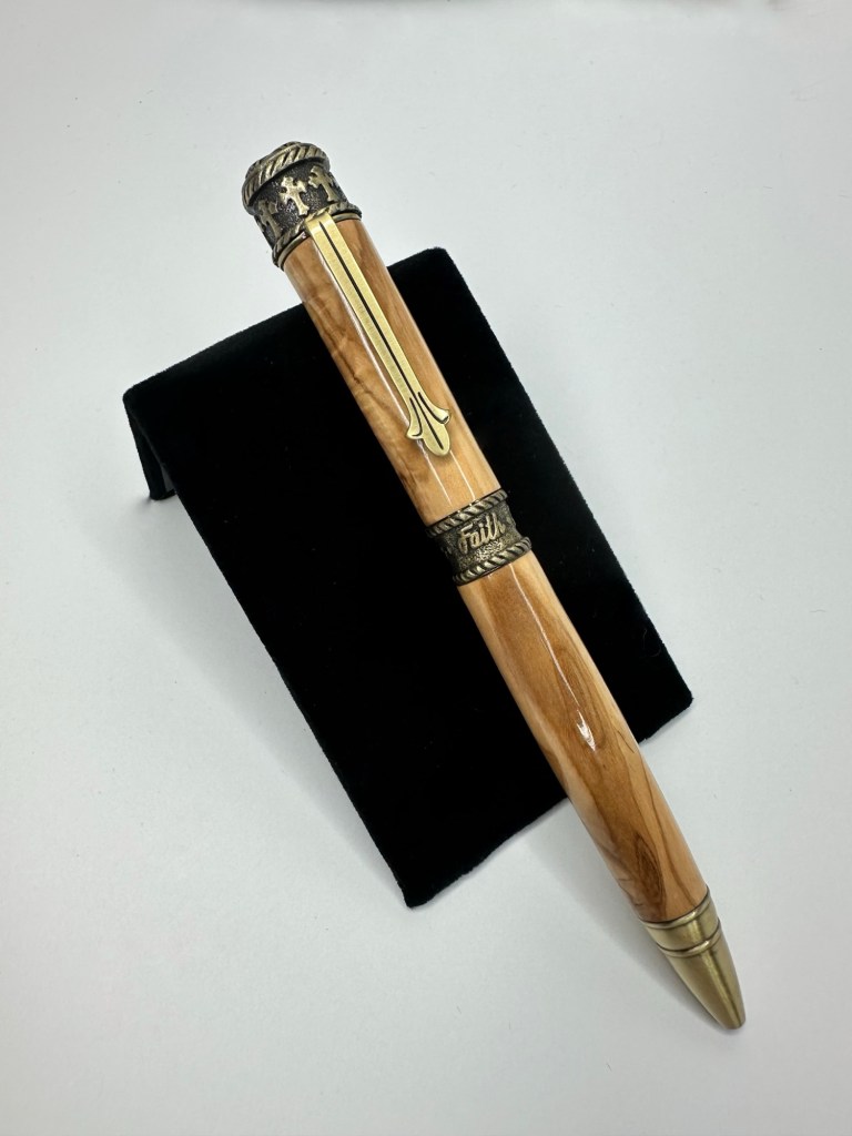 #21 Love, Hope and Faith Pen in Olive Wood with a Antique Brass Finish