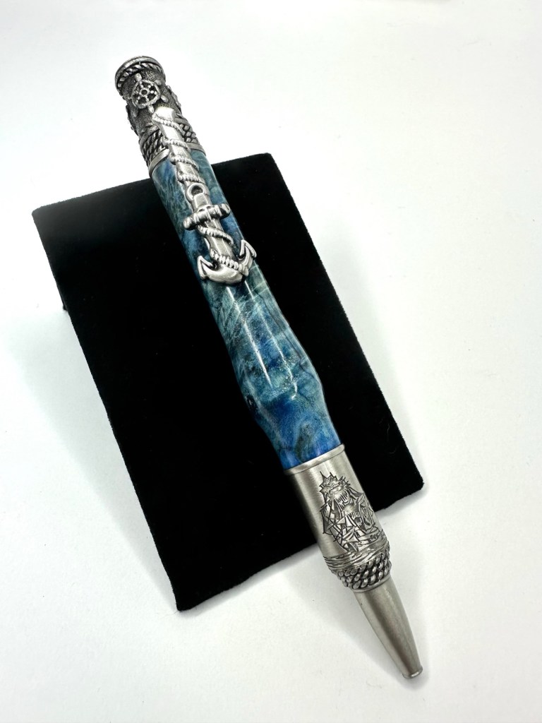#18 Nautical Pen in Dyed Blue Wood with a Antique Pewter Finish