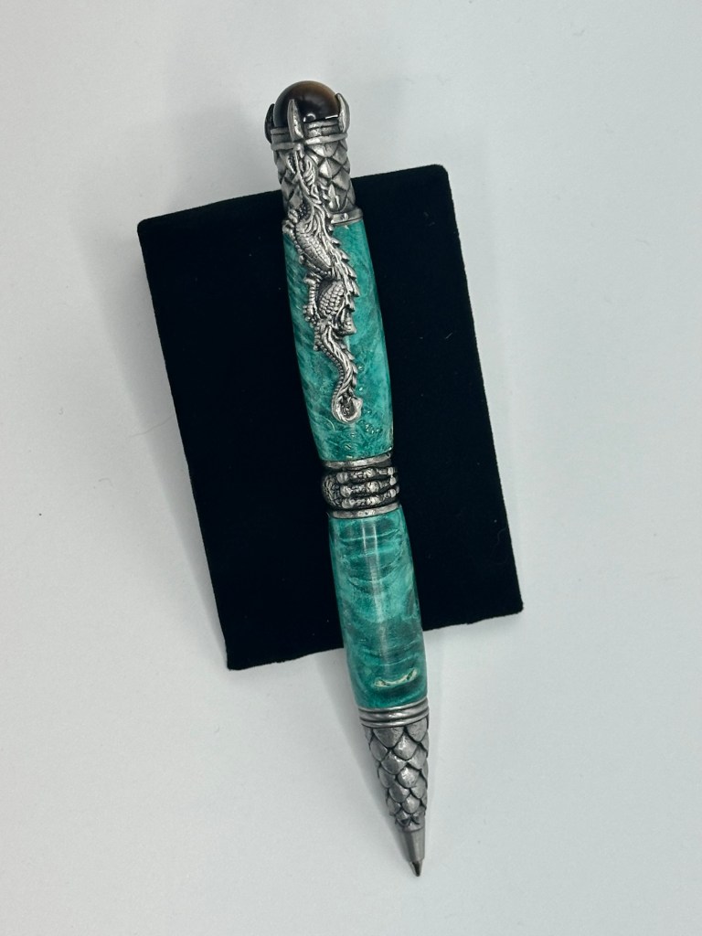 #13 Dragon Pen in Dyed Green Wood with a Antique Pewter Finish