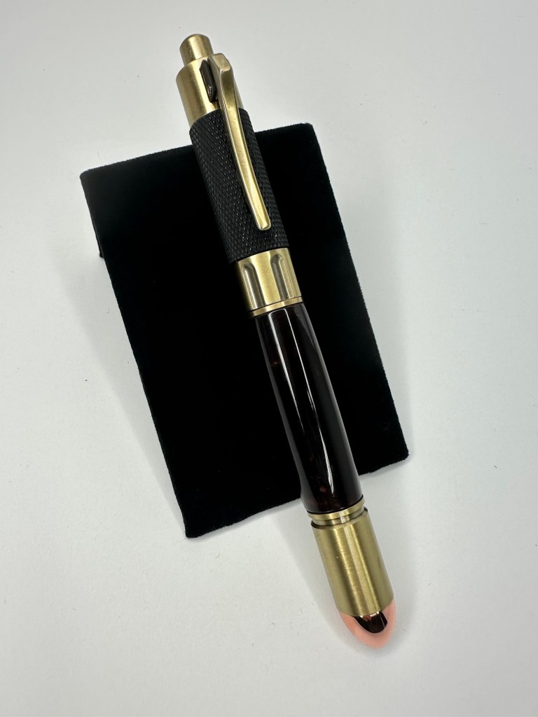 #11 Revolver Pen in Shiny Brown Resin with a Antique Brass Finish