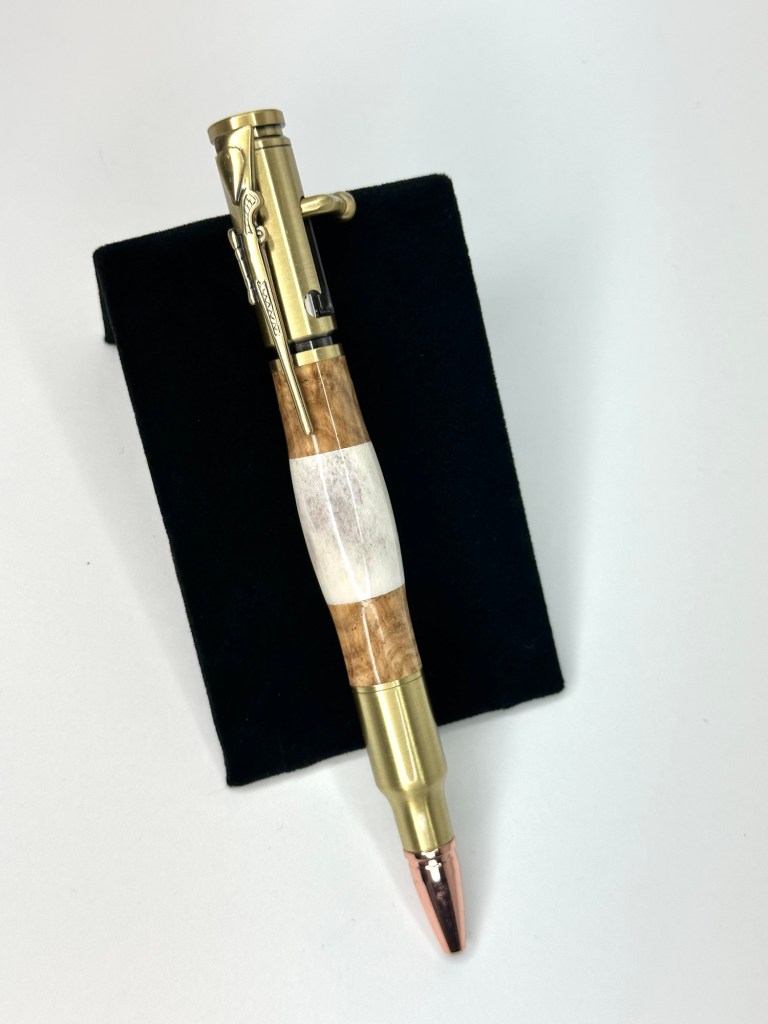 #4 Bolt Action Riffle Pen in Deer Antler & Wood with a Antique Brass Finish
