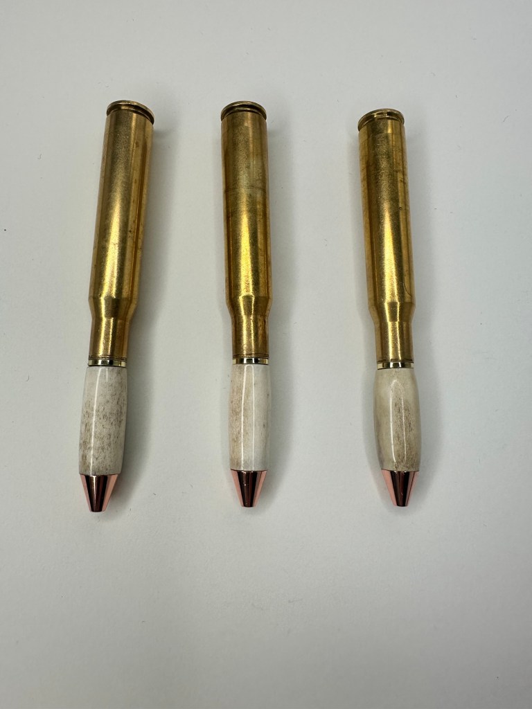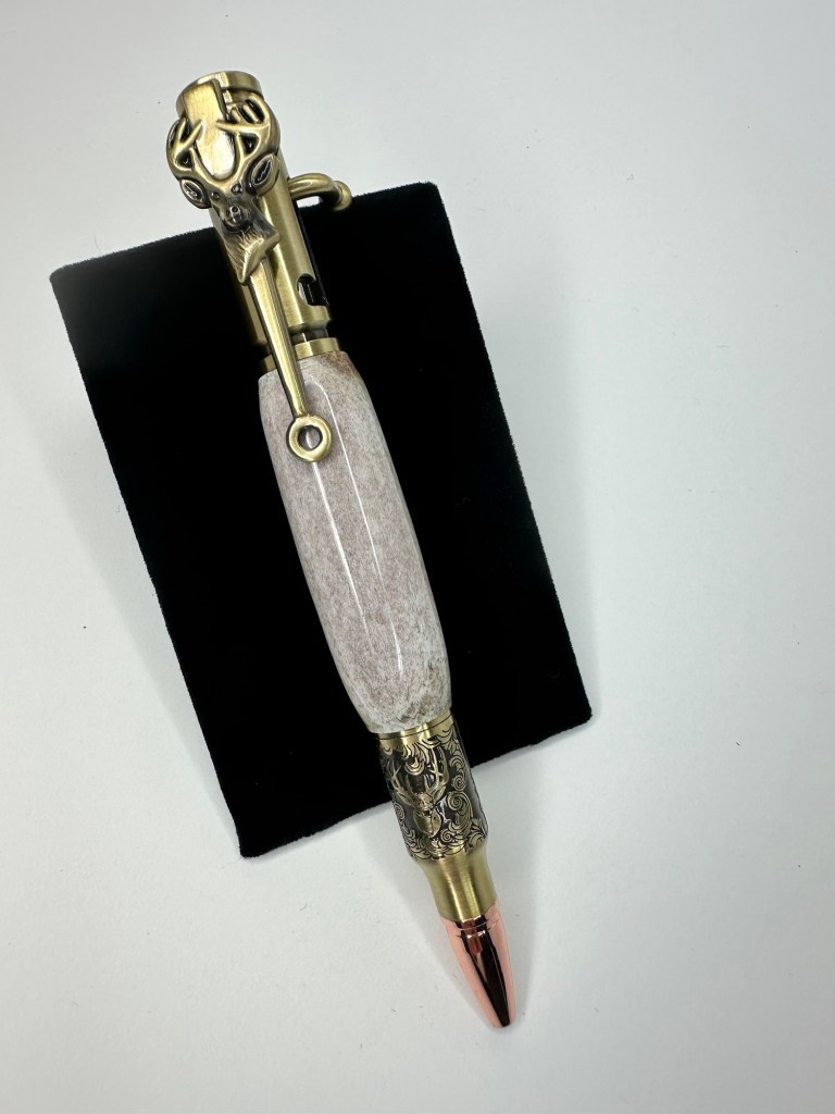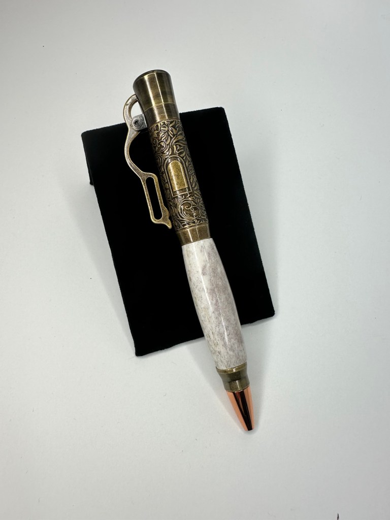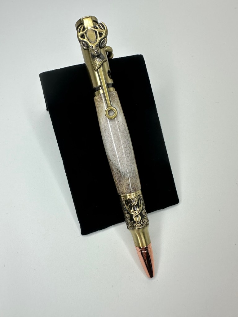#7 Bolt Action Deer Pen in Deer Antler with a Antique Brass Finish