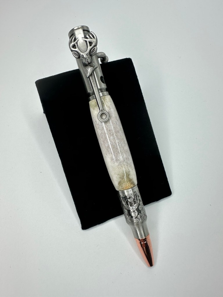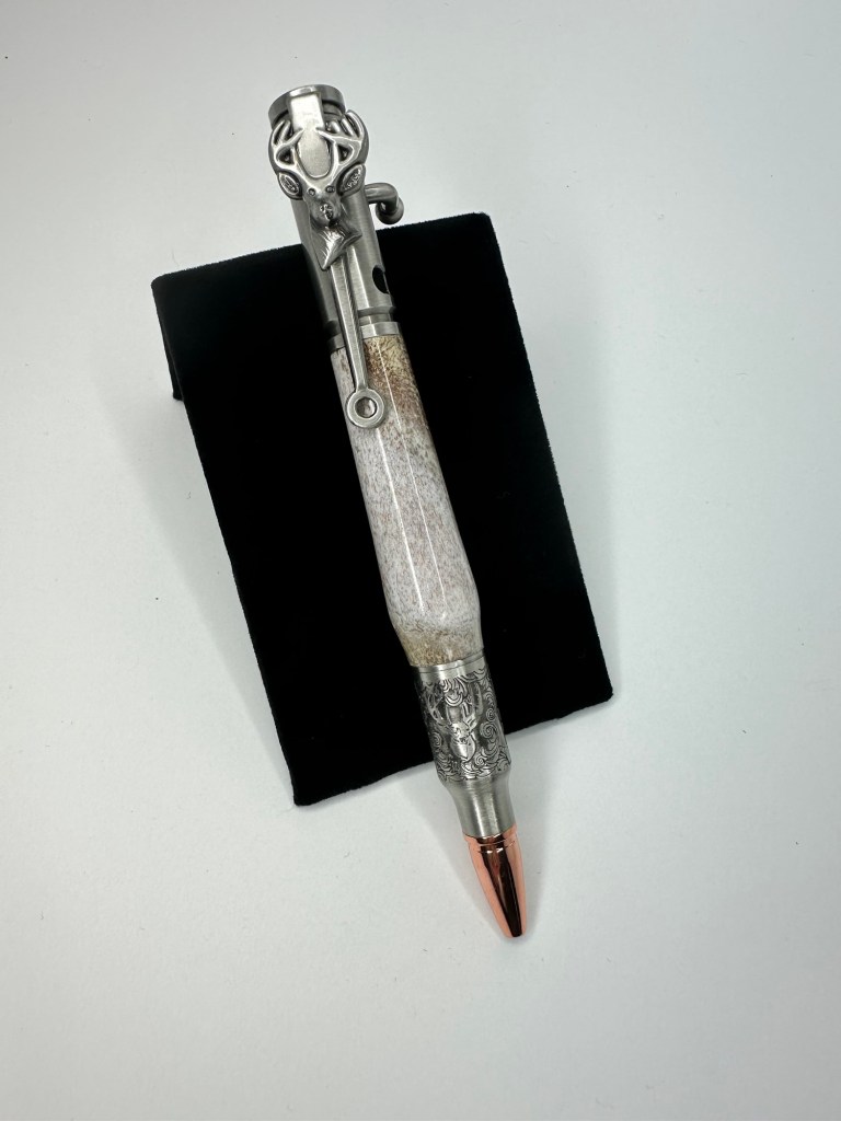 #5 Bolt Action Deer Pen in Deer Antler with a Antique Pewter Finish