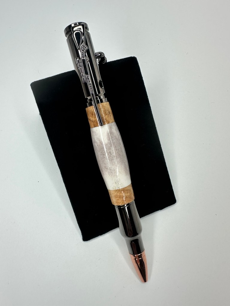 #3 Bolt Action Riffle Pen in Deer Antler & Wood with a Gun Metal Finish