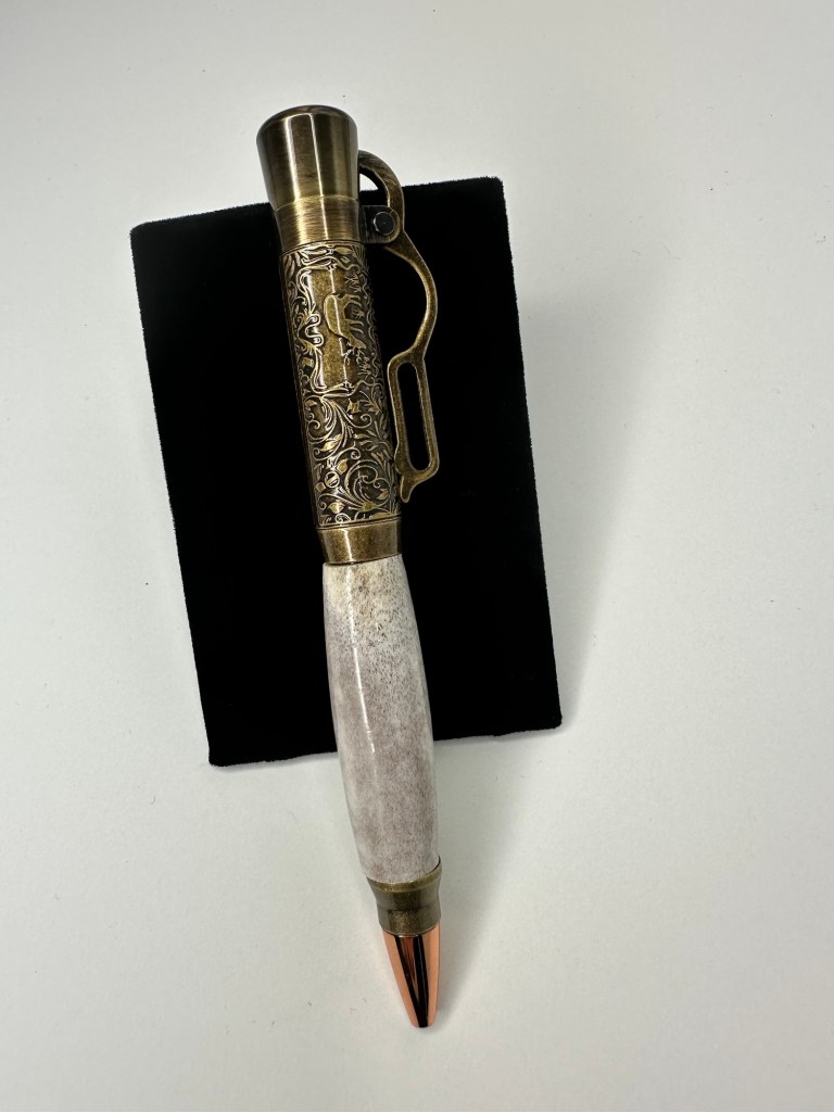 #8 Bolt Action Deer Pen in Deer Antler with a Antique Brass Finish
